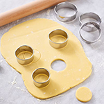 Praktiskt stansset innehållande 2 stycken stansringar med en tillhörande press tillverkade i rostfritt stål. Ringarna är slittåliga och kan användas i ugn, fungerar lika