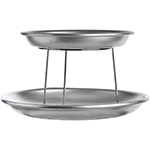 Låg ställning för exempelvis skaldjursbufféer eller andra dukningar där nivåer behövs. Tillverkad i rostfritt stål med ett kromat yttre. Den övre ringen mäter Ø 21 cm och den undre Ø 25 cm.