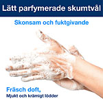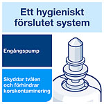 ...ingredienser som ger en lyxig handtvättsupplevelse med fylligt och krämigt skum. Tvålen är certifierat enkel att fylla på av Svenska Reumatikerförbundet (testad i enlighet med The Design for All-test, publicerad i Swedish Design Research Journal 2011) och påfyllningen tar mindre än 10 sekunder (baserat på internt paneltest). Tvålen hjälper till att minska vattenförbrukningen med upp till 10 % (i jämförelse med Tork Milt Doftande Flytande Tvål). Den förseglade flaskan är gjord av 30 % återvunnen plast (pumpen exkluderad). Dessutom krymper den, vilket leder till 70 % mindre avfallsvolym (baserat på test av Essity). Använd med Tork Dispenser för tvål och handdesinfektion, som är bevisat Easy to use och ger alla användare god handhygien.