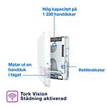 ...Dispensern ger dig marknadens längsta batteritid och matar ut handdukar på mindre än en sekund – om och om igen. Systemet är kompatibelt med Tork PeakServe Continuous™ Handduk och har en mycket hög kapacitet på 1230 handdukar. De komprimerade refillerna går snabbt att fylla på när som helst. Dessutom är de enkla att förvara och transportera, så att personalen kan fokusera på städningen istället för på påfyllningarna.