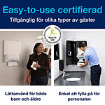 ...handdukar. Systemet har en hög kapacitet och kan mata ut ark snabbt och utan avbrott för att behålla flödet. De komprimerade refillerna kan fyllas på smidigt när som helst. Dessutom är de enkla att förvara och transportera, så att personalen kan fokusera på städbehovet istället för påfyllningsbehovet.