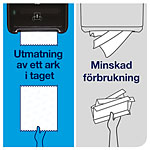 ...Du kommer minska avfallet i toalettutrymmen genom utmatningen av en handduk i taget, vilket gör att du kan använda färre rullar till fler besökare. Hygienen förbättras också eftersom gästerna endast vidrör pappershandduken och inte dispensern. Personalen i välbesökta toalettutrymmen kommer uppskatta den höga kapaciteten eftersom det innebär färre påfyllningar. Dessutom har den ett dubbelt låssystem som skyddar refillerna.
