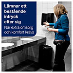 ...denna dispenser för handdukar. Den automatiska sensorn möjliggör utmatning av en pappershandduk i taget, vilket är både hygieniskt och ekonomiskt. Med sin refillindikator, höga kapacitet och 99,9 % trasselfria utmatning är denna dispenser för handdukar perfekt för medel- och högtrafikerade toalettutrymmen. Dessutom skyddas refillerna av systemet med dubbla lås.