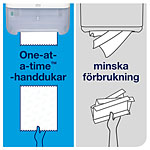 ...Du kommer minska avfallet i toalettutrymmen genom utmatningen av en handduk i taget, vilket gör att du kan använda färre rullar till fler besökare. Hygienen förbättras också eftersom gästerna endast vidrör pappershandduken och inte dispensern. Personalen i välbesökta toalettutrymmen kommer uppskatta den höga kapaciteten eftersom det innebär färre påfyllningar. Dessutom har den ett dubbelt låssystem som skyddar refillerna.