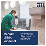 ...denna dispenser för handdukar. Den automatiska sensorn möjliggör utmatning av en pappershandduk i taget, vilket är både hygieniskt och ekonomiskt. Med sin refillindikator, höga kapacitet och 99,9 % trasselfria utmatning är denna dispenser för handdukar perfekt för medel- och högtrafikerade toalettutrymmen. Dessutom skyddas refillerna av systemet med dubbla lås.