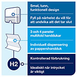 ...Handduk för toalettutrymmen med medelhög besöksfrekvens. Dispensern får plats i små utrymmen och erbjuder dina gäster både komfort och hygien.