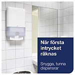 ...Handduk för toalettutrymmen med medelhög besöksfrekvens. Dispensern får plats i små utrymmen och erbjuder dina gäster både komfort och hygien.