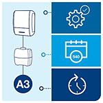 Tork Starter Pack Konstant Airfreshener vit A3: Förvandla ditt toalettutrymme till en inbjudande plats med Tork Starter Pack Konstant Airfreshener som innehåller en dispenser och en refill med doften Bris. Den unika, högteknologiska distributionsteknologin* doserar parfym kontinuerligt för en varaktig doft som inte försvinner, medan den odörneutraliserande formulan eliminerar oönskade lukter. Påfyllningarna är enkla eftersom dispensern kan placeras på lägre höjd än traditionella system och den är certifierat Easy to use.** *Patenterad teknologi baserad på beprövad bränsleteknik som används inom läkemedelsindustrin, där exakta doser är viktiga vid behandling av människor och djur. **Certifierad av Svenska Reumatikerförbunder, testad i enlighet med The Design for All-test, publicerad i Swedish Design Research Journal 2011.