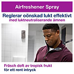 Tork Airfreshener Spray Frukt A1: Avlägsna effektivt odörer i alla typer av toalettutrymmen med det luktneutraliserande innehållet i vår Tork Airfreshener Spray Frukt. Med en fruktig doft framtagen av en ledande europeisk parfymtillverkare skapar denna spray ett förstklassigt intryck. Den innehåller dessutom koncentrerade doftoljor för varaktig fräschhet. Denna airfreshener spray kan användas med Tork Dispenser Airfreshener Spray, vars flexibla inställningar och enkla programmering garanterar minskat underhåll för personalen.