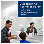 ...det luktneutraliserande innehållet, och de koncentrerade doftoljorna avger en varaktig, fräsch doft. Doften är dessutom utvecklad av en ledande europeisk parfymtillverkare och den lämnar garanterat gästerna med det rätta intrycket. För maximal effektivitet i toalettutrymmen kan denna spray kombineras med vår mycket praktiska Tork Dispenser Airfreshener Spray.