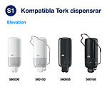 ...utrymmen. Dispensrarna finns tillgängliga separat. Passar för det stora utbudet av Tork dispensrar för hudvårdsprodukter och handdesinfektionsrefiller ger ökad anpassningförmåga till varje typ av miljö Robust och stabil design för kompatibilitet med både manuella och sensordrivna dispensrar Enkel montering gör den snabbare och enklare att installera