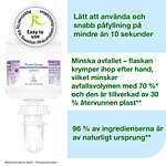 ...en fräsch doft, samt återfuktande och uppfriskande ingredienser för en skonsam handtvätt. Tvålen passar med Tork Dispensrar Tvål och Handsprit Mini, är Easy to use-certifierad och förser alla användare med god handhygien.