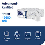 Tork OptiServe® Coreless Toalettpapper Vit T7: Tork OptiServe® Coreless är ett system med hög kapacitet för toalettpapper utan hylsa som passar anläggningar där effektivitet, hållbarhet och en utmärkt upplevelse är av största vikt. Hög kapacitet, minskad förvaringsplats och en design som är Easy to use-certifierad gör det till ett bättre alternativ än vanligt toalettpapper och jumborullar. Dessa 2-lagers toalettrullar utan hylsa passar en rad olika dispensrar för toalettpapper utan hylsa för att möta behoven i olika toalettutrymmen, så att samma kompakta refiller för toalettpapper kan användas i hela anläggningen. Jämfört med vanligt toalettpapper rymmer Tork OptiServe® Coreless rullar 3 gånger mer papper eftersom de varken har hylsa eller omslag, vilket innebär mindre avfall.