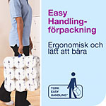 ...hållbarhet och en utmärkt upplevelse är av största vikt. Hög kapacitet, minskad förvaringsplats och en design som är Easy to use-certifierad gör det till ett bättre alternativ än vanligt toalettpapper och jumborullar. Dessa 2-lagers toalettrullar utan hylsa passar en rad olika dispensrar för toalettpapper utan hylsa för att möta behoven i olika toalettutrymmen, så att samma kompakta refiller för toalettpapper kan användas i hela anläggningen. Jämfört med vanligt toalettpapper rymmer Tork OptiServe® Coreless rullar 3 gånger mer papper eftersom de varken har hylsa eller omslag, vilket innebär mindre avfall.