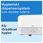 ...passar anläggningar där effektivitet, hållbarhet och en utmärkt upplevelse är av största vikt. Hög kapacitet, minskad förvaringsplats och en design som är Easy to use-certifierad gör det till ett bättre alternativ än vanligt toalettpapper och jumborullar. Denna dispenser för två rullar toalettpapper är del av ett brett sortiment som möter behoven i olika toalettutrymmen, så att samma kompakta refiller för toalettpapper kan användas i hela anläggningen. Jämfört med vanligt toalettpapper rymmer Tork OptiServe® Coreless rullar 3 gånger mer papper eftersom de varken har hylsa eller omslag, vilket innebär mindre avfall.