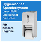 Tork OptiServe® Dispenser Coreless Toalettpapper 2 rullar Rostfritt stål T7: Tork OptiServe® Coreless är ett system med hög kapacitet för toalettpapper utan hylsa som passar anläggningar där effektivitet, hållbarhet och en utmärkt upplevelse är av största vikt. Hög kapacitet, minskad förvaringsplats och en design som är Easy to use-certifierad gör det till ett bättre alternativ än vanligt toalettpapper och jumborullar. Denna dispenser för två rullar toalettpapper är del av ett brett sortiment som möter behoven i olika toalettutrymmen, så att samma kompakta refiller för toalettpapper kan användas i hela anläggningen. Jämfört med vanligt toalettpapper rymmer Tork OptiServe® Coreless rullar 3 gånger mer papper eftersom de varken har hylsa eller omslag, vilket innebär mindre avfall.