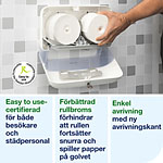 ...passar anläggningar där effektivitet, hållbarhet och en utmärkt upplevelse är av största vikt. Hög kapacitet, minskad förvaringsplats och en design som är Easy to use-certifierad gör det till ett bättre alternativ än vanligt toalettpapper och jumborullar. Denna dispenser för två rullar toalettpapper är del av ett brett sortiment som möter behoven i olika toalettutrymmen, så att samma kompakta refiller för toalettpapper kan användas i hela anläggningen. Jämfört med vanligt toalettpapper rymmer Tork OptiServe® Coreless rullar 3 gånger mer papper eftersom de varken har hylsa eller omslag, vilket innebär mindre avfall.