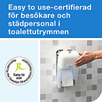 ...passar för anläggningar där effektivitet, hållbarhet och en utmärkt upplevelse är av största vikt. Hög kapacitet, minskad förvaringsplats och en design som är Easy to use-certifierad gör det till ett bättre alternativ än vanligt toalettpapper och jumborullar. Denna dispenser för en rulle toalettpapper är del av ett brett sortiment som möter behoven i olika toalettutrymmen, så att samma kompakta refiller för toalettpapper kan användas i hela anläggningen. Jämfört med vanligt toalettpapper rymmer Tork OptiServe® Coreless rullar 3 gånger mer papper eftersom de varken har hylsa eller omslag, vilket innebär mindre avfall.
