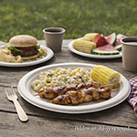Tallrik från DeliQ i fibermaterialet bagasse som tillverkas av restfibrer från sockerrör. Materialet är stabilt, formfast och klarar både varma och kalla rätter utan att mjukna snabbt. Använd vid servering där ett snabbt och smidigt flöde är viktigt och där diskhantering behöver minimeras.