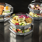 ...den. Den är utformad för livsmedelsbutiker, cateringfirmor och delikatessdiskar. Skålens kristallklara, imfria lock och den stora, mörkgråa serveringsytan ramar perfekt in sallader, sushi, skaldjur och charkuterier och ger ett exklusivt utseende. Octaview är tillverkad av APET utan kimrök, och hela sortimentet minskar därav CO₂e med upp till 78 % * – perfekt för dig som vill kombinera en fantastisk matpresentation med en lägre miljöpåverkan.