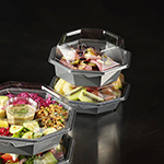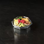 ...den. Den är utformad för livsmedelsbutiker, cateringfirmor och delikatessdiskar. Skålens kristallklara, imfria lock och den stora, mörkgråa serveringsytan ramar perfekt in sallader, sushi, skaldjur och charkuterier och ger ett exklusivt utseende. Octaview är tillverkad av APET utan kimrök, och hela sortimentet minskar därav CO₂e med upp till 78 % * – perfekt för dig som vill kombinera en fantastisk matpresentation med en lägre miljöpåverkan.