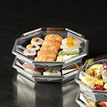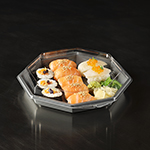 ...den. Den är utformad för livsmedelsbutiker, cateringfirmor och delikatessdiskar. Skålens kristallklara, imfria lock och den stora, mörkgråa serveringsytan ramar perfekt in sallader, sushi, skaldjur och charkuterier och ger ett exklusivt utseende. Octaview är tillverkad av APET utan kimrök, och hela sortimentet minskar därav CO₂e med upp till 78 % * – perfekt för dig som vill kombinera en fantastisk matpresentation med en lägre miljöpåverkan.
